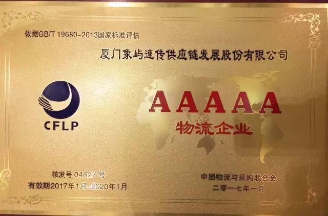 4月7日,由中國物流與采購聯(lián)合會主辦的“物流企業(yè)授牌大會暨物流業(yè)創(chuàng)新發(fā)展論壇”在云南省昆明市順利召開,會議對本批A級物流企業(yè)進(jìn)行了集中授牌,象嶼速傳供應(yīng)鏈發(fā)展股份有限公司榮膺最高評級國家AAAAA級綜合服務(wù)型物流企業(yè),成為象嶼旗下繼象嶼股份后第二家獲此殊榮的企業(yè)。