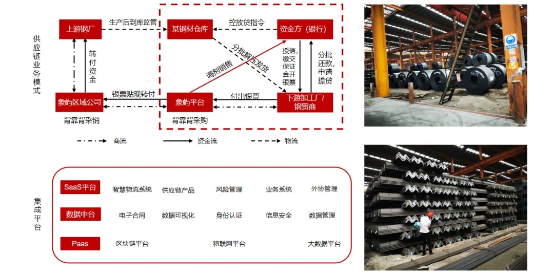 象嶼股份作為供應(yīng)鏈核心企業(yè),借助IOT(物聯(lián)網(wǎng))、區(qū)塊鏈、AI等技術(shù),圍繞塑化、鋁產(chǎn)品、鋼材等產(chǎn)品進(jìn)行倉(cāng)單質(zhì)押融資,通過(guò)數(shù)字化建設(shè),輔助背書客戶資信、貨權(quán)監(jiān)管和輔助銷售,獲取資金方的認(rèn)可,幫助中小微企業(yè)客戶增信,解決中小微企業(yè)融資難的問(wèn)題。目前象嶼智慧物流平臺(tái)已獲得建行總行、普洛斯等多家金融機(jī)構(gòu)數(shù)字化監(jiān)管倉(cāng)準(zhǔn)入,《人民日?qǐng)?bào)》等媒體也作了專題報(bào)道。
